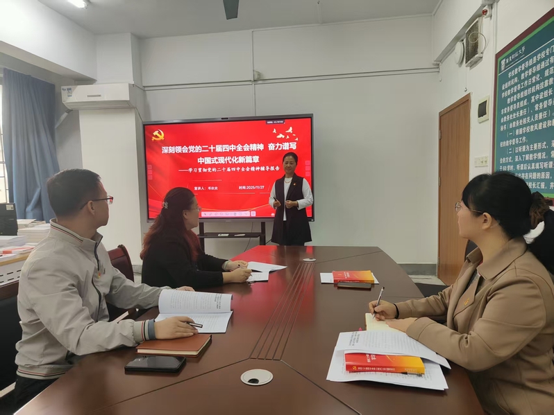 11月27日,教学质量监控与评估中心党支部在明德楼214会议室召开学习贯彻党的二十届四中全会精神主题党日活动。活动由中心党支部书记邓欣欣主持,支部全体党员参加。